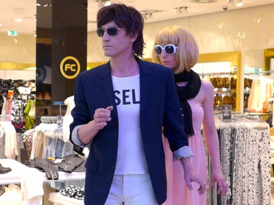 Kleine Geschichten ereignen sich im Schaufenster eines Geschäfts oder auf der Aktionsfläche in einem Kaufhaus und fesseln die Aufmerksamkeit der Passanten.